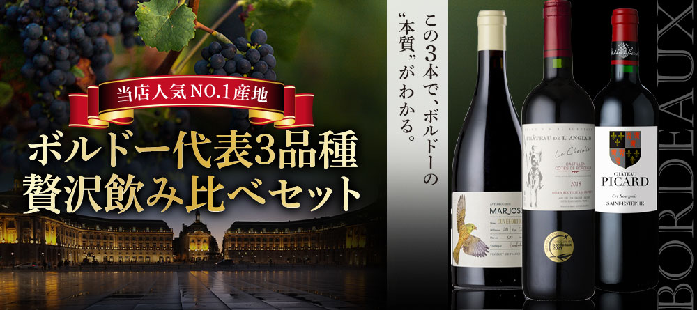 当店人気NO.1産地ボルドー代表3品種を贅沢飲み比べ!
