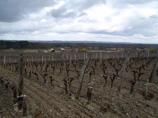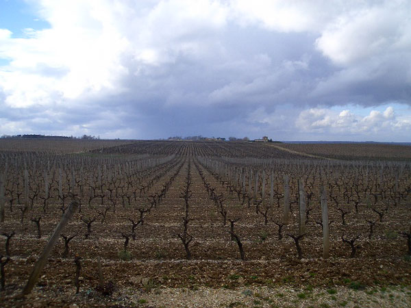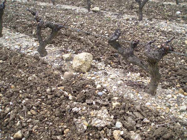 - シャトー南側の区画。表土には砂利と砂が見え、区画によっては石灰岩が混じっているところもあります
