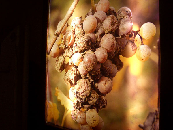 - 樽貯蔵室に飾られていた、貴腐化したブドウの写真です