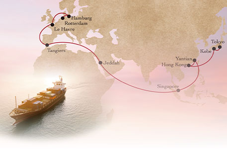 港でコンテナに積み込まれたワインは、日本へ向けて海上輸送されます。フランスから日本までは1万キロ以上。航路では赤道付近も通過するため、温度管理は極めて重要です。