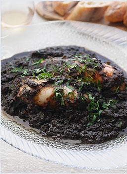旬のやりいかが手に入ったらぜひ作っていただきたいバスク地方の郷土料理「墨煮」。バスクはフランスとスペインにまたがる美食の街。チャコリというワインが有名ですが、身近でなかなかないので、フルーティーでフレッシュな酸味のある白ワインと一緒に召し上がってみてくださいね^^真っ黒なソースに大きないかのファルシは豪快でインパクトがあり、おもてなしにもぴったりです!