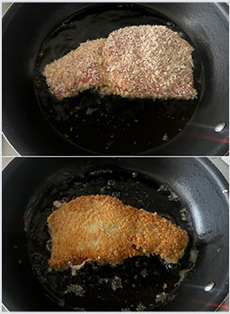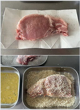 豚肉の上下面に塩(分量外)を満遍なく振り、薄力粉、溶き卵、パン粉の順に塗す。