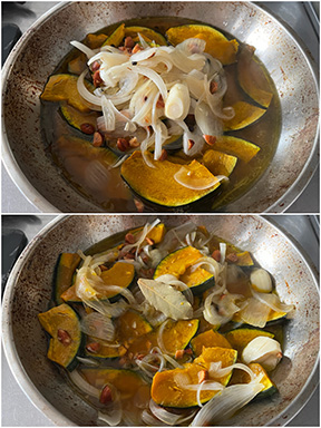 焼き上がったかぼちゃに3を回しかけて優しく混ぜて冷ます。
