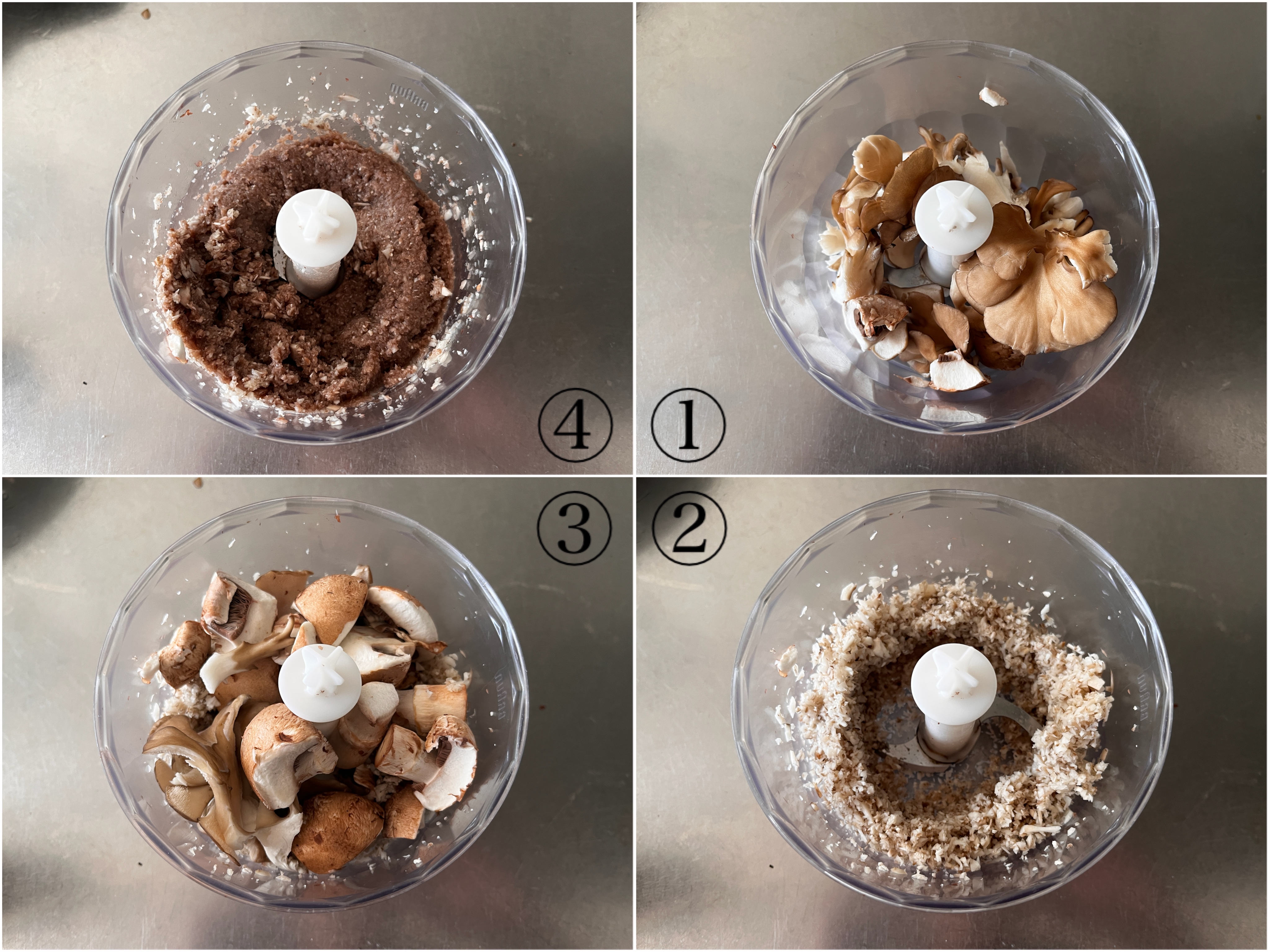 きのこは食べやすい大きさに切り、フードプロセッサーで撹拌する。