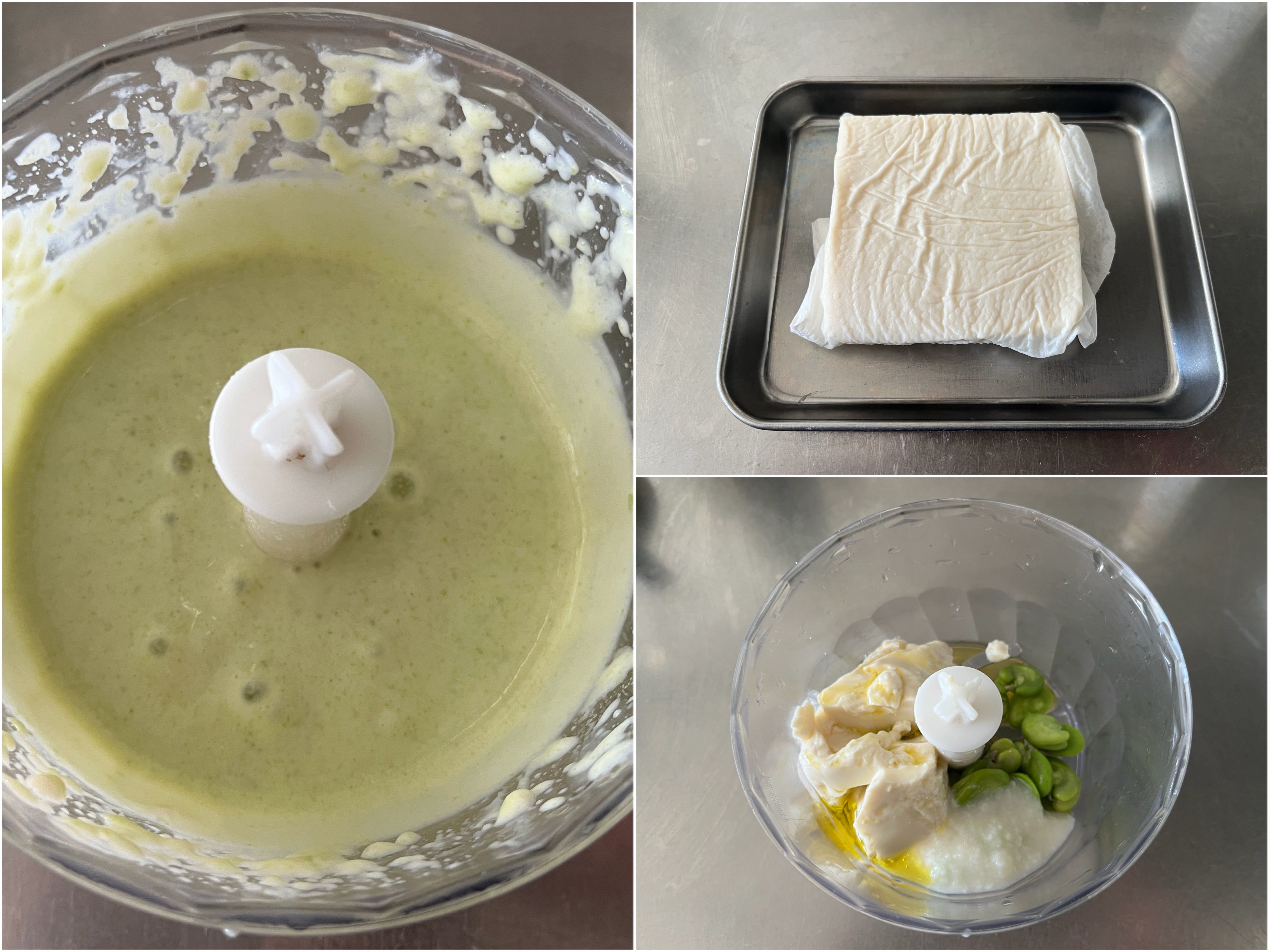 材料のB(飾り用そら豆数粒は除く)を全てフードプロセッサーに入れて滑らかなソースを作る。