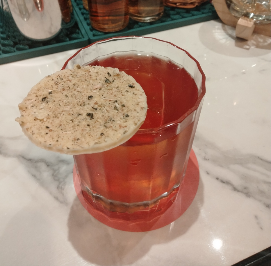 私たちがいただいたのは、SASSYロゼを使ったカクテル。食前酒としてよく飲まれるリキュール「リレ」が加えられ、