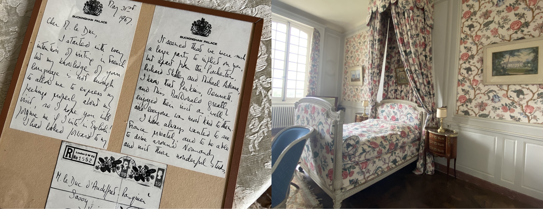 実際にエリザベス女王が泊まられたお部屋には、訪問時の写真やバッキンガム宮殿から送られてきた御礼のお手紙が飾られていました。