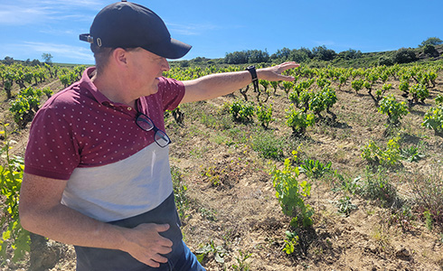 道中、チェマさんの経歴を伺ってみると、チェマさんはムリエル家の一員で、現在醸造家としては3代目。9年間、スペインを代表する生産者のクネ社で経験を積んだ後、家族のワイナリーに戻り現在16年、ムリエルワインでワイン造りを担当しているようです。そんな話をしていると、畑に到着しました。