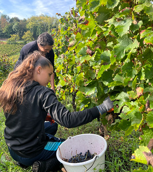 シャトーによっては、畑の中に選果台を置いているところもあります!