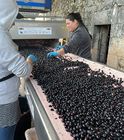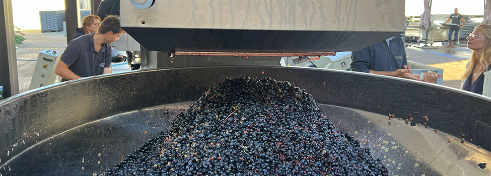 収穫されたブドウは酸化しないよう、急いで醸造所へ運ばれます。