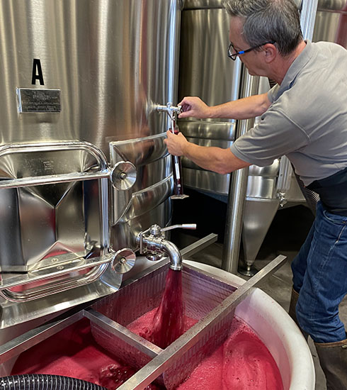 発酵を終えたら、タンクの下部からワインだけを抜き取ります。