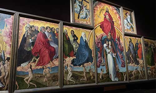 オテル・デュ―最大の見どころである、フランドル派ウェイデン氏作の絵画。中央にはキリストが描かれ、手にしている天秤によって人々を測り、天国・地獄へと導きます。